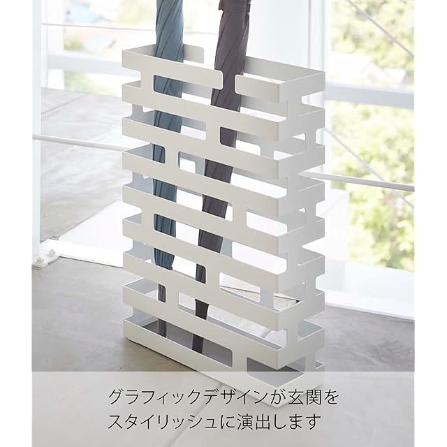商品名:山崎実業(Yamazaki) かさたて ワイド ホワイト 約W30×D10×H43cm ブリック BRICK 傘立て 折り畳み傘も収納可能 2360
