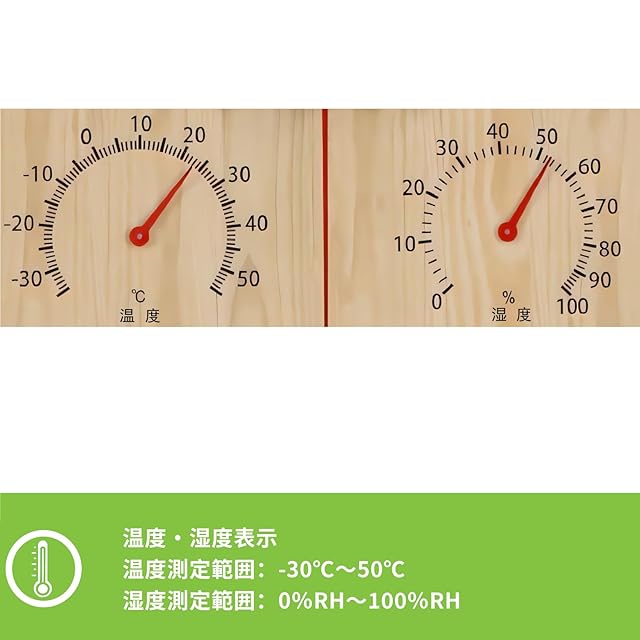機能:電波自動受信で正確な時間を常に提供します。文字盤左右には温度計と湿度計が配置され、連続秒針は滑らかに動いて静かな動作を実現。