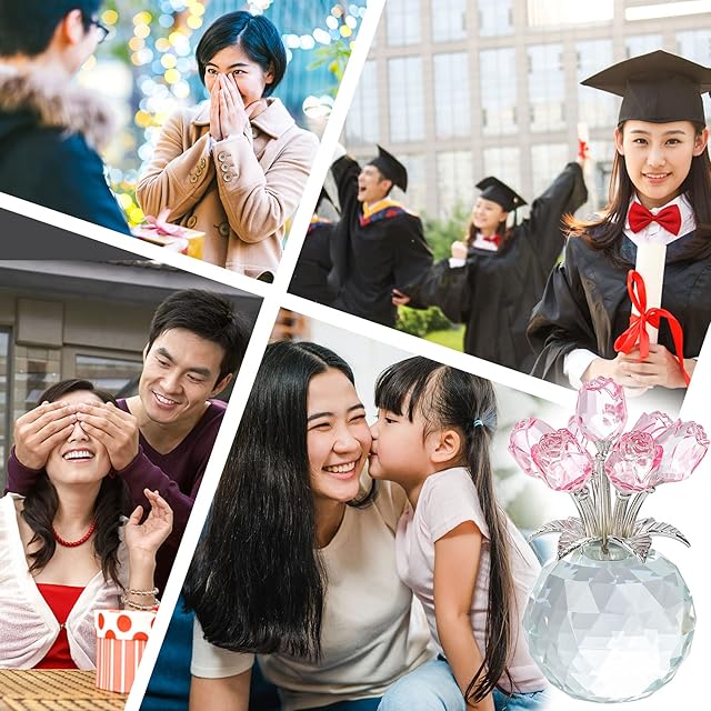 Kertari 誕生日プレゼント女性 人気 【正規品】k9クリスタル バラ花 枯れない花 造花 薔薇 インテリア ギフト 結婚祝 記念日 母の日 父の日 クリスマス 退職 お祝い ホワイトデー に適用 母 妻 彼女への贈り物 - ピンク