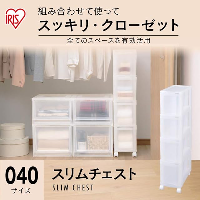 アイリスオーヤマ キッチンチェスト 調味料ラック クローゼット 押し入れ収納 4段 キャスター付き 日本製 半透明 MSC-040 幅20×奥行41×高さ93.6㎝