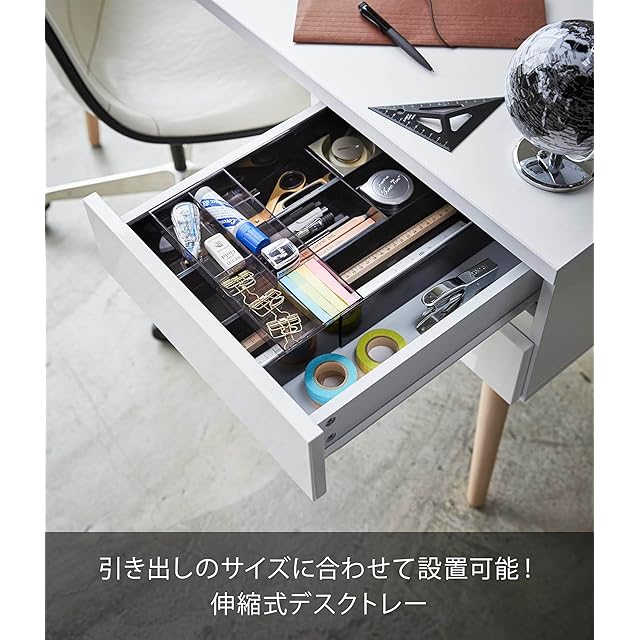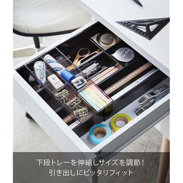 山崎実業(Yamazaki) 伸縮 & スライド デスクトレー ブラック 約W25×D24.6~45×H5.7cm タワー tower 引き出し 収納ケース 伸縮式 3442