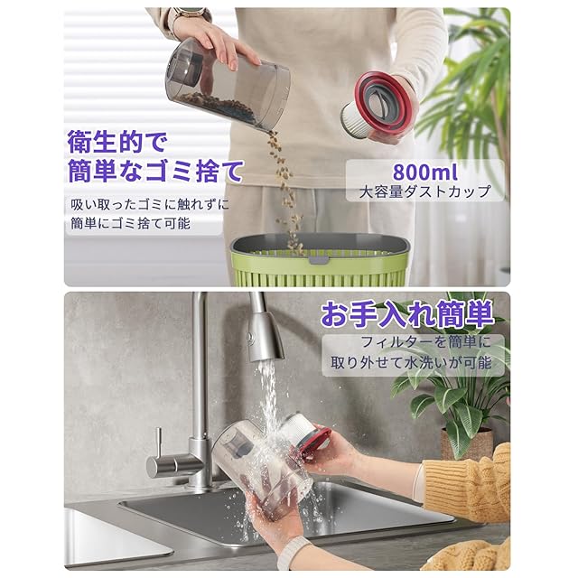 【800ml大容量ダストカップとゴミ捨て簡単】掃除機 サイクロン コード式は800mlの大容量ダストカップを搭載して、ゴミ捨て回数や手間を軽減します。ダストカップを簡単に取り外して、お手入れんも簡単で、手を汚しません。スティック 掃除機 軽量のHEPAフィルターを洗浄し、乾燥させて再利用することができて、エコを実現します。