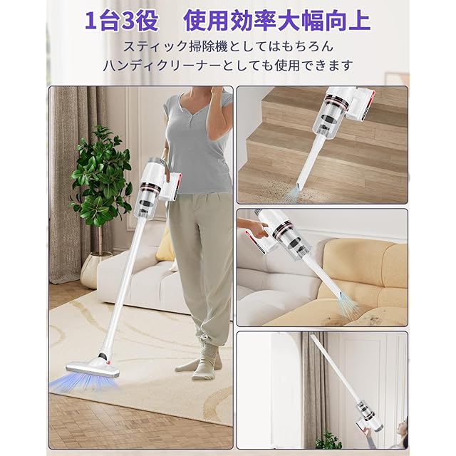 【驚くほどの軽量化とコンパクト】掃除機 スティックの重量(本体)はわずか1.1kgで、片手でも自由に使えて、毎日のお掃除がぐっと簡単になります。人間工学に基づくハンドルデザインによりとても持ちやすくて家庭主婦や老人に最適!また、掃除機のボタンを一度押すだけで進みますのでボタンを押し続ける苦労から解放!一人暮らし 掃除機として大活躍!【交換用フィルターのASIN:B0DKTBPD1Q/ B0DY7T49M2】