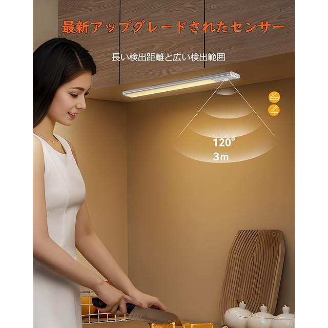 商品名:【連続点灯60時間可】人感センサーライト 充電式 室内 超薄 ledバーライト マグネット キャビネットライト クローゼット キッチン フットライト 足元灯 玄関灯 室内照明 電球色 昼白色 30cm 2個入