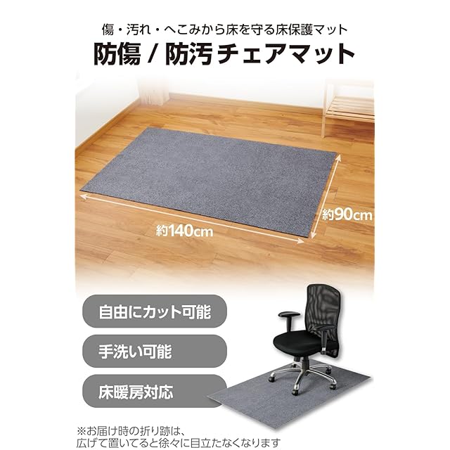 商品名:エレコム チェアマット 90cm×140cm 厚さ4mm ずれにくい ノンスリップ加工 マット デスク 椅子 移動スムーズ 吸音 床傷防止 滑り止め 丸洗い可能 床暖房対応 グレー FB-CM01GY-AZ