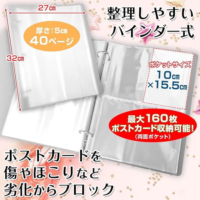 Goods marche ポストカード 専用 収納ファイル はがきサイズ 160枚収納可能 (縦入れ)