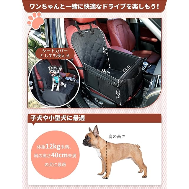 商品名:KYG ドライブボックス シートカバー 2WAY ドライブペット 型崩れしない 飛び出し防止リード付き 中敷き付き 折り畳み可能 滑り止め 防水 助手席 後部座席 小型犬用