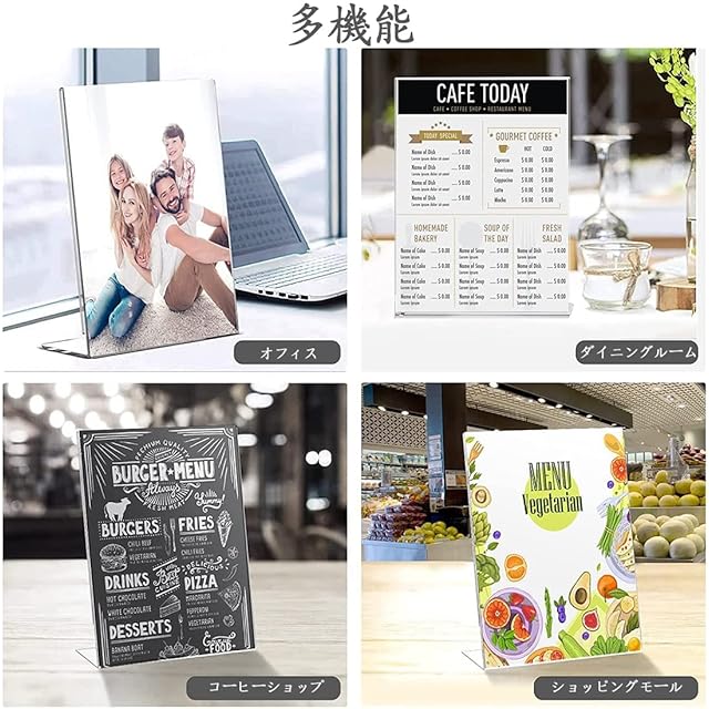 【幅広い用途】T型ディスプレイスタンドは、広告ページ、パンフレット、テーブルサイン、メニュー、ポスターなどを表示するために広く使用され、家庭、オフィス、学校、レストラン、教会、ホテル、展示会、結婚式などに適しています。