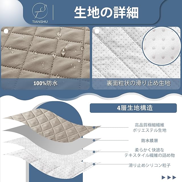 商品名:TIANSHU ソファーカバー 3人掛け 防水 マルチカバー 肘付き 犬猫対策 ソファーマット 滑り止め 撥水加工 ソファカバー 無地 シートカバー 傷防止 爪とぎ防止 防塵 汚れ防止 洗える 四季適用 (カーキ)