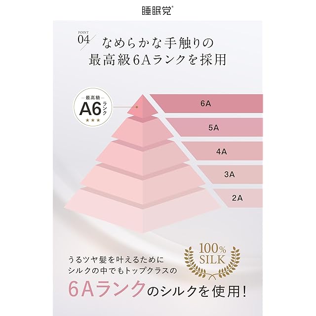 【なめらかな手触りの最高級6Aランクシルク】うるツヤ髪を叶えるため、表面は6Aランクシルクを100%使用しています