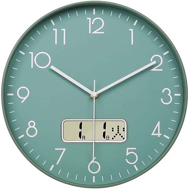 商品名:Nbdeal 掛け時計 電波時計 静音 連続秒針 おしゃれ 日付 曜日表示 直径30cm 壁掛け 時計 北欧 (グリーン)
