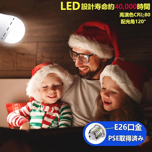 LED電球 停電感知センサー内蔵:ブレーカーが落ちたり、送電そのものが停止するのを感知して点灯します。<br> *注意:ブレーカー、照明器具のスイッチは ON で点灯!<br> <br> 点灯時~自動充電: 照明器具に取り付けて点灯している時間に自動充電します。 <br> 点灯時充電時間:4~6時間で80% 、6~10時間で100%。<br> 緊急時に役立つバッテリー内蔵LED電球! <br> 停電を自動検知可能! <br> 緊急時に付属ソケットのボタンで点灯! <br> ソケット無しでも手でつまむだけで点灯! <br> 品番:PSE_9W<br> 明るさの目安: "60W 形相当 (LED照明として使用時810lm,通常に懐中電灯として使用時360lm)<br> 口金サイズ:E26 <br> 光の広がり:配光角120° <br> 光源色:3000K 電球色相当 <br> 定格消费電力:9W <br> 定格入力電流:0.12A <br> 電源: AC 90~110V (50/60Hz共用) <br> 内蔵バッテリー: 2400mAh <br> バッテリー充電時間:4-6時間で80% , 6-10時間で100% <br> バッテリー点灯時間:約4-5時間 <br> 商品寸法:外径65mm <br> 商品重量:135g <br> 設計寿命: 約40,000時間 <br> 期間 :2年 (規定による)<br> <br> <br> ※以下の器具・環境には使用できません。<br> ・調光(明るを変える機能)やセンサーの付いた照明器具や回路。<br> ・リモコン機能の付いた照明器具や回路。<br> ・同一スイッチ内に他の電気器具が接続された照明器具や回路。<br> ・誘導灯、非常用照明器具。<br> ・水銀灯・ナトリウムランプ等のHIDランプ対応器具。<br> ・断熱材施工器具等の熱のこもりやすい器具。<br> ・高温もしくは多湿の場所、水滴がかかる場所や屋外。<br> <br> 緊急時に役立つバッテリー内蔵LED電球!<br> 停電を自動検知可能!<br> 緊急時に付属ソケットのボタンで点灯!<br> ソケット無しでも手でつまむだけで点灯!<br> 停電自動検知:停電(ブレーカーが落ちる、送電がとまる)を検知して自動で点灯します。<br> <br> PSE認証済 :日本政府が定める電気用品安全法(PSE)の安全基準に適合した認証済の製品です。(電気用品安全法 製造・輸入事業者)<br> <br> 使用中の注意<br> ・防水ではありません。水に濡れたり湿気の多い場所では使用しないでください。<br> ・LED素子には光色、明るさにばらつきがあるため、同じ商品でも光色、明るさが異なることがあります。<br> ・人感センサーなど自動点滅装置や遅れ停止スイッチなどには使用できない場合があります。<br> ・手点灯の時、手が乾燥している場合に点灯できないことがあります。付属のソケットに装着しスイッチで点灯してくださ。<br> ・リチウムイオンバッテリーは消耗品です。バッテリーの交換はできません。<br> ・3か月に1回は充放電してください。使用せず放置しますとバッテリーの充電能力が低下し使用できなくなることがあります。<br> ・海外でご使用になる時は渡航先の電力規格等をよくお確かめの上ご使用ください。<br> ・分解や改造はしないでください。<br> <br> について<br> 本製品はお買い上げの日から2年以内に故障が発生した場合、規定に定める内容で無償で修理又は交換をいたします。<br> *「使用上の注意」に従った正常な使用状態で故障及び損傷した場合が対象になります。<br> *期間内に、無料修理を受ける時は必ず本製品・個装箱・付属品などを当社に送付してください。<br>