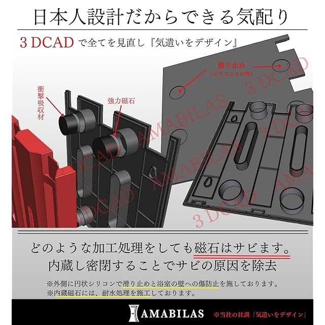 ✅【なぜ磁石内蔵】浴室は生活環境下で高温多湿で厳しい環境です。そんな場所にラバーマグネットなどの磁石を直接取り付けるために防水加工・撥水加工・シリコンコーティングなどを施工することでサビにくい状態にしています。しかし掃除時に洗う事で剥がれ防水性能が低下する可能性があるため弊社では長く使っていただきたい思いから湿気問題を磁石を内蔵しさらに防水壁を設け防水磁石を使用することで何重にも防水の対策をすることが可能な見えない部分に時間を費やし完成させた構造デザイン。