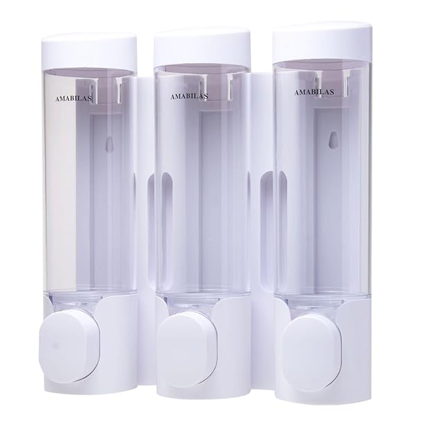 【磁石内蔵型】 シャンプーディスペンサー 壁掛け マグネット ソープ シャンプー 日本企業開発 詰替え用 シャンプーボトル AMABILAS (ホワイト)
