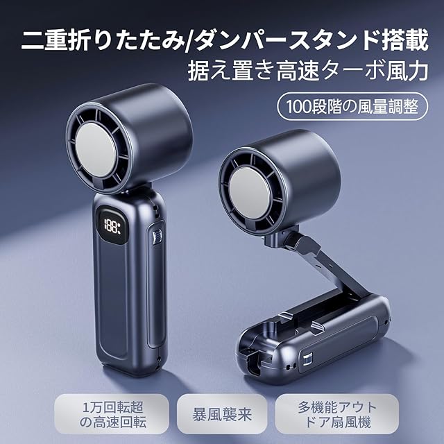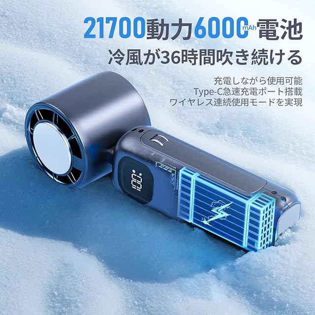 商品名:Finect ハンディファン 冷却プレート 冷感プレート 扇風機 ハンディ 強力 静音 ハンディ せんぷうき 首掛 6000mAh大容量 長時間稼働 軽量 手持ち扇風機 100段階調節 折り畳み 卓上 ストラップ付き モバイルバッテリー機能付き LEDディスプレイ 熱中症対策