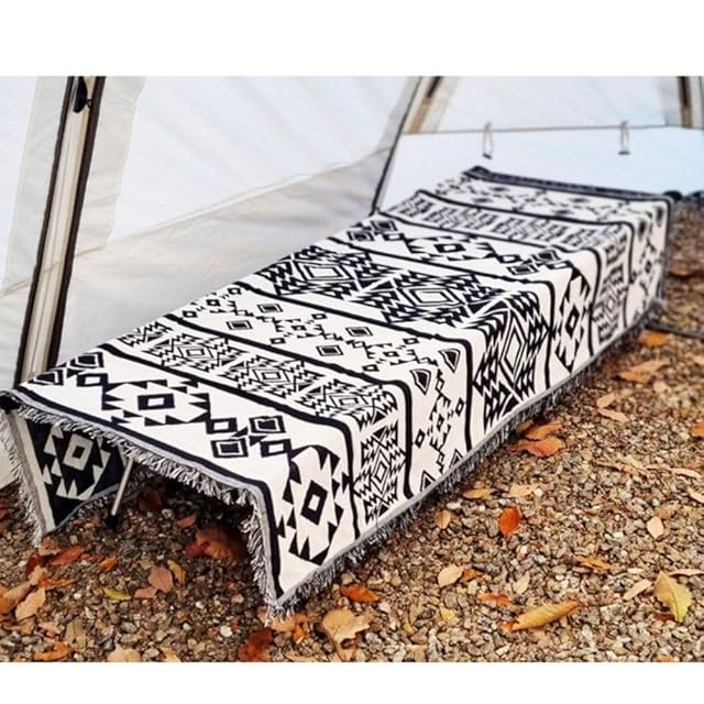 コット用ラグ キャンプ ラグマット オルテカ柄 キリム アウトドア 民族柄 マルチカバー リバーシブル ブランケット (オルテカ柄, 90㎝×210㎝)