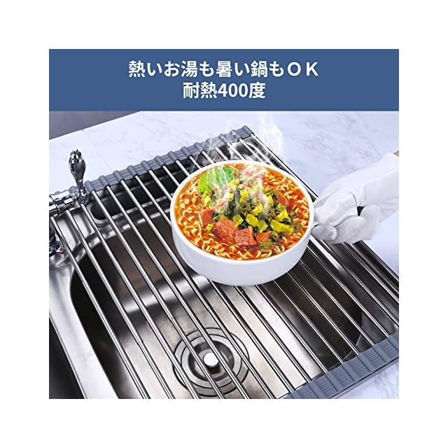 水切りラック 折りたたみ 伸縮タイプ水切り 抗菌 耐熱 錆びない 滑り止め サイズ調整可能 28-50cm 食器水切り 食器乾燥ラック 巻き収納 キッチン用品 (グレー)