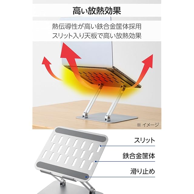 作業しやすい高さ・角度に無段階で調整できる、ノートパソコンスタンドです。