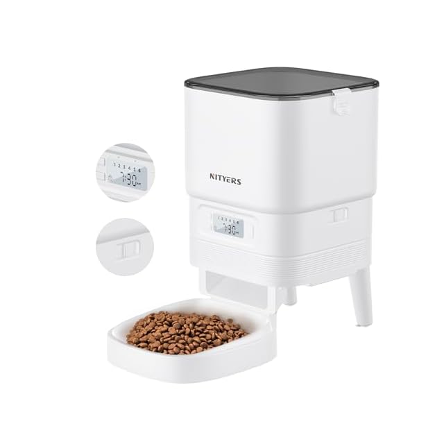 商品名:Nityers 自動給餌器 猫 中小型犬用 4.2L自動えさやり器 猫 タイマー式 1日6食 定時定量 2WAY給電 手動給餌可 水洗い可能 餌詰まり防止機能 操作簡単 お手入れ簡単 日本語説明書付き ホワイト