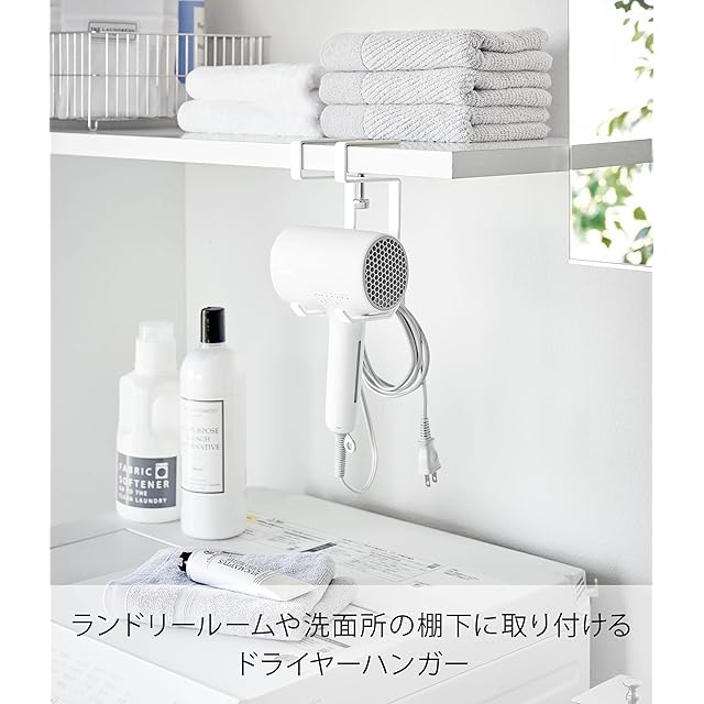 山崎実業(Yamazaki) 棚下 ドライヤー ハンガー ホワイト 本体:W8.2×D8.5×H18.8cm タワー tower ドライヤーホルダー T字型ドライヤー対応 1640