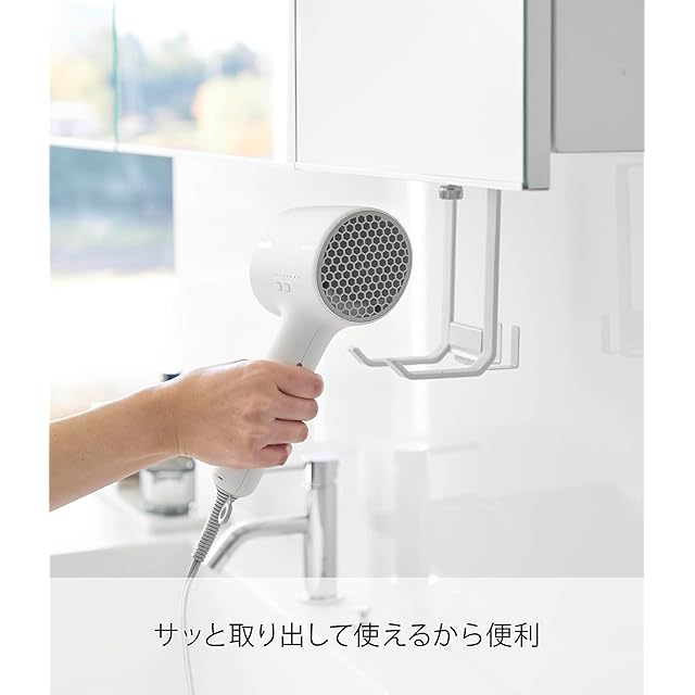 商品名:山崎実業(Yamazaki) 棚下 ドライヤー ハンガー ホワイト 本体:W8.2×D8.5×H18.8cm タワー tower ドライヤーホルダー T字型ドライヤー対応 1640