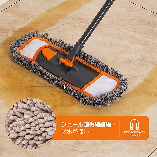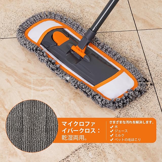 【いいデザイン・組立簡単】360度回転モップヘッドのデザインで、ベッドの下やソファの下など、家具と床の隙間までもスムーズに掃除でき、苦労して腰を屈めて掃除する必要はなく、お年寄りや妊婦ともに便利な掃除ができる。効果的に時間を節約できる。 手元に到着してすぐ使用したり、モップ本体は軽量で片手でも操作したりできるので、毎日楽に掃除を実現できます。