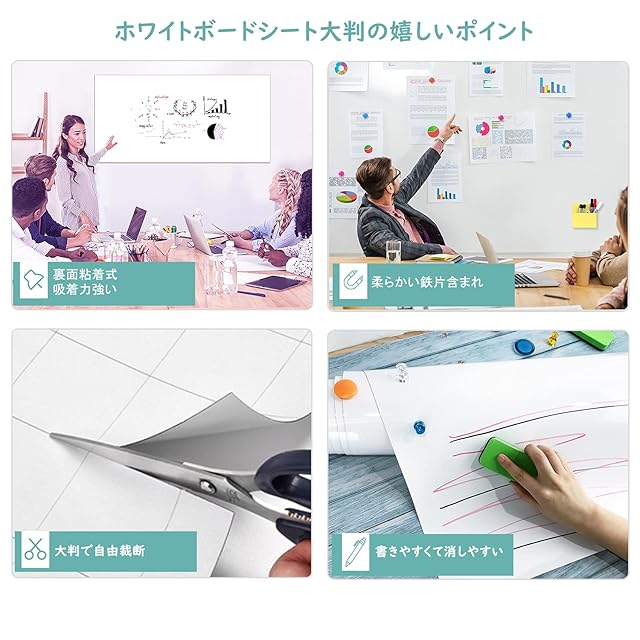 【自由に裁断】大判のホワイトボードシート 子ども用ホワイトボード で、 ハサミ、カッターなどを使い、A3或いはA4などのお好きなサイズを調整でき、黒板、部屋、窓、浴室、トイレ、冷蔵庫、キッチン、天井、ガラス、平壁、金属面に直接に貼られて、土壁、砂壁などザラザラした面の使用をお薦めしません
