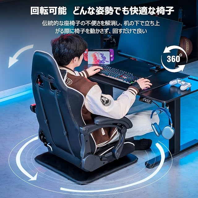 【360°回転可能な座椅子】一部の座椅子では机の下から立ち上がるのが難しい問題がありますが、この製品は360度回転できるので、立ち上がるだけでなく、好きな角度に回転するのも簡単です。