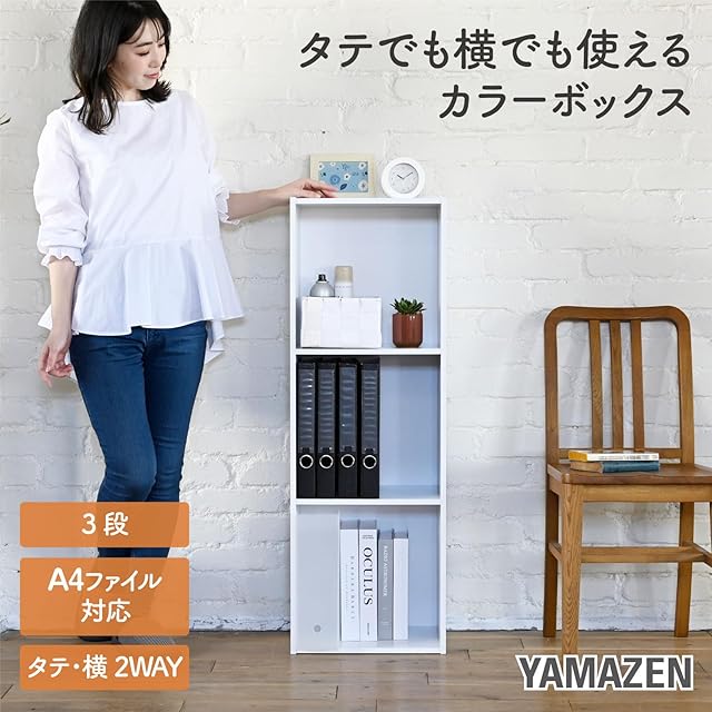 商品名:山善(YAMAZEN) 棚 ラック カラーボックス 3段 A4ファイル対応 タテ・ヨコ使える 本棚 テレビ台 収納 幅36×奥行26×高さ106cm 組立品 ホワイト FGAB-3(WH)