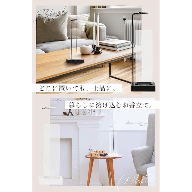 商品名:Ambiante 【2名のプロ監修】 お香立て 灰がこぼれない お香 香炉 モダン 北欧 線香立て インセンスホルダー 吊り下げ インテリア おしゃれ 可愛い ブラック ホワイト 黒 白 ガラス 日本企業 (ブラック)