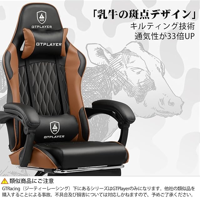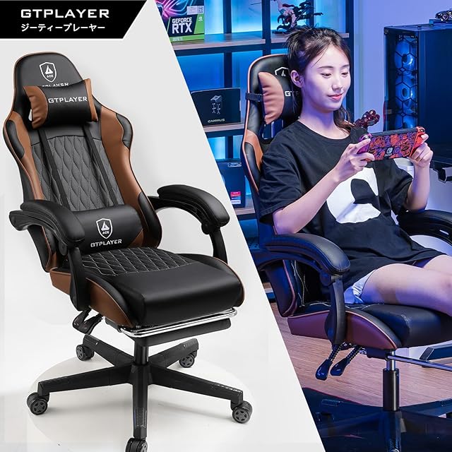 商品名:GTRacing (ジーティーレーシング) ゲーミングチェア 白 デスク pcチェア 椅子 テレワーク 145°リクライニング オットマン付き ゲームチェア ハイバック ランバーサポート ポケットコイルが内蔵 PUレザー GTPlayerシリーズGTP900-BROWN