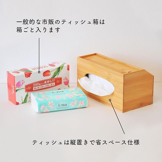 ❷特徴:職人の手で丁寧に作られた、天然竹の収納ボックス付きティッシュケースです。 素材の良さを生かした優しい風合いは、落ち着きと温かみが感じられます!