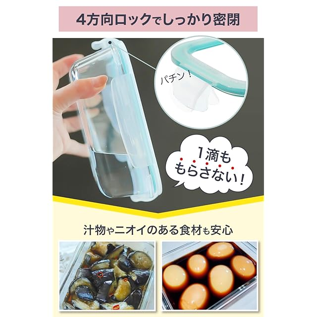✅【 液体もニオイも密閉 】パッキン付属4方向ロックでしっかり密閉するので、おひたしやスープなどの液体保存もおまかせ。ニオイももらさないので、キムチやチーズなどの保存にも最適です。