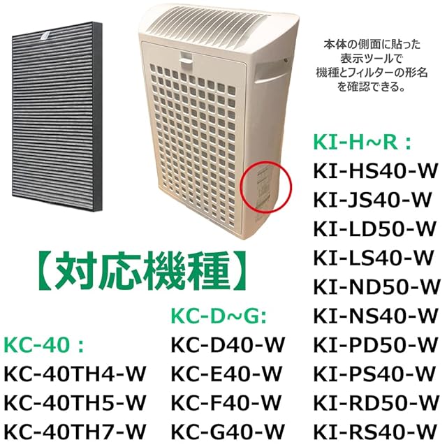【対応機種】 KC-D40-W KC-E40-W KC-F40-W KC-40TH4-W KC-40TH5-W KC-40TH7-W KC-G40-W KI-HS40-W KI-JS40-W KI-LD50-W KI-LS40-W KI-ND50-W KI-NS40-W KI-PD50-W KI-PS40-W KI-RS40-W KI-RD50-W