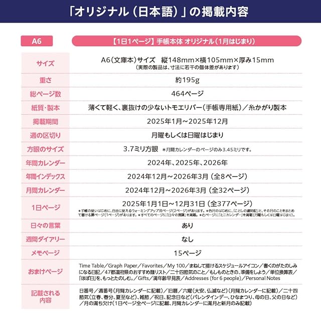 商品名:ほぼ日手帳 2025 HON 久保田寛子/三日月配達[A6/1日1ページ/1月/月曜はじまり]