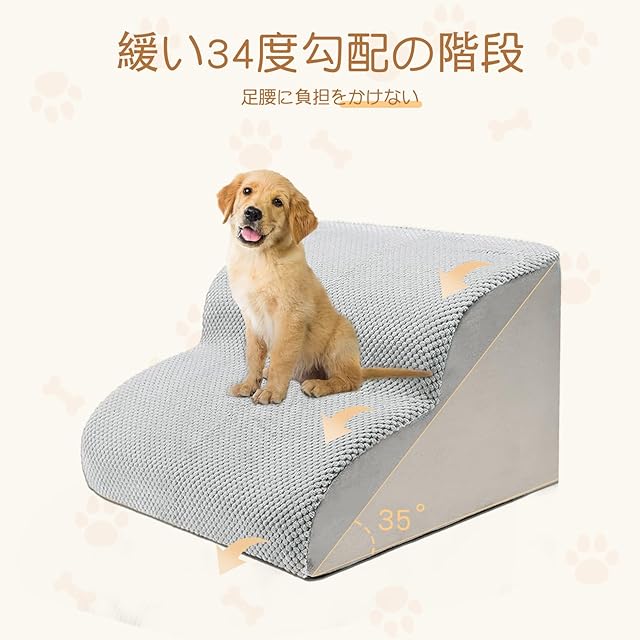 商品名:映澤 犬階段 2段 グレー ドッグステップ ペット階段 滑り止め付き 洗濯便利 カバー取り外し可能 高さ30CM (2段)…