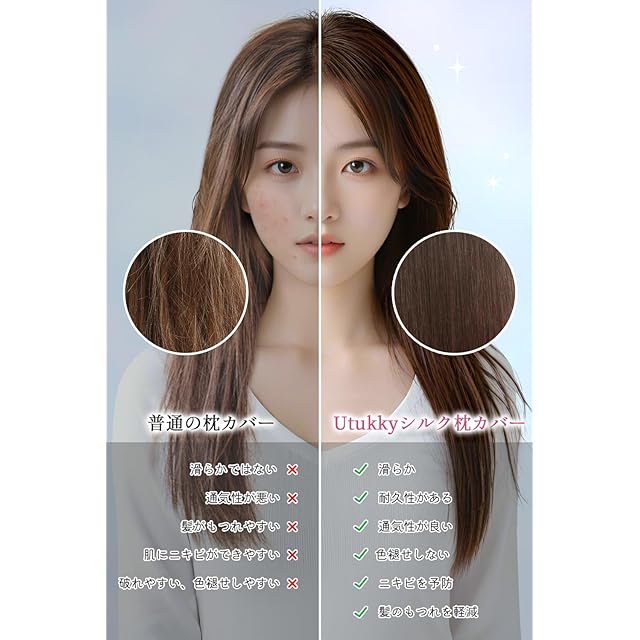 商品名:Utukky シルク 枕カバー まくらカバー 43 63 洗える 全サイズ 片面シルク 封筒式 ピローケース 綿 寝癖軽減 抗菌防臭 美髪 美肌 敏感肌に優しい 四季適応 ギフト 贈り物 プレゼント