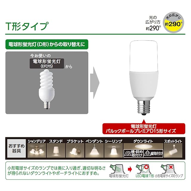 全光束(明るさ):1080ルーメン 明るさ広がる広配光 約290度