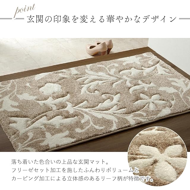 イケヒコ 玄関 選べる マット ラグ ウィルトン 単品 ネム ベージュ 約50×80cm 厚み 約15mm トルコ製 へたりにくい 耐久性 弾力性 抗菌防臭 消臭 エレガント カービング 加工 洗濯不可 おしゃれ ふわふわ #1311320021701
