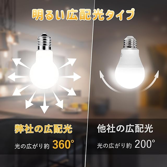 『全方向タイプ·高輝度』全光束(明るさ):800lm、ビーム角:約360°、より広い照射範囲があり。どこにでも適用され、スイッチを入れた瞬間に点灯します。階段、風呂場、廊下、玄関、リビング、ダイニングなどに使用できます。設置は簡単です。
