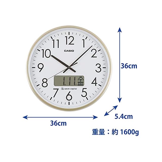 商品名:CASIO(カシオ) 掛け時計 壁掛け時計 電波時計 ホワイト ゴールド アナログ 時報付き時計 カレンダー IC-2100J-9JF