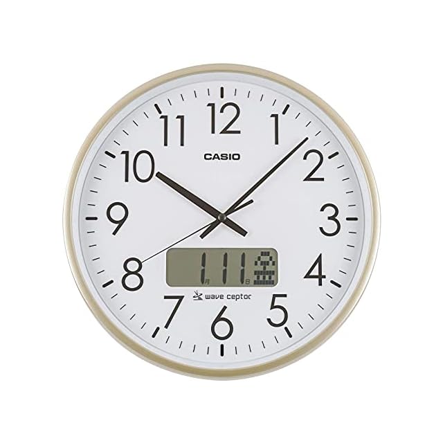 CASIO(カシオ) 掛け時計 壁掛け時計 電波時計 ホワイト ゴールド アナログ 時報付き時計 カレンダー IC-2100J-9JF