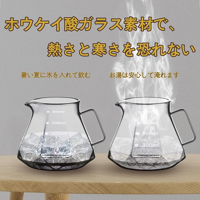 【高品質】この コーヒー ドリップ 器具 の本体は、耐久性と信頼性の高い厚手の高ホウケイ酸ガラスで作られています。 ガラス製のコーヒーカップは熱に強く、傷つきにくいです。 手淹れコーヒーの楽しさを体験するのに最適。