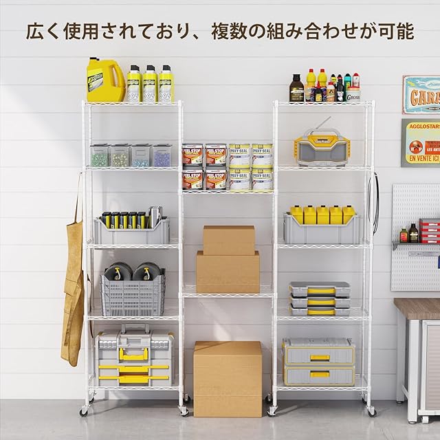 【大容量&省スペース】6段のスチールラックで、収納力も抜群。しかも、省スペースで設置できるので、お部屋のレイアウトも自由自在。