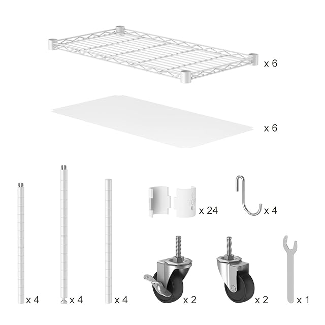 NATRKE メタルラック 6段 ホワイト キャスター付き スチールラック スチールシェルフ ワイヤーラック 置物架 大容量 防錆 傷つきにくい おしゃれ 省スペース棚 耐荷重240kg 幅54×奥行29×高さ165.5cm