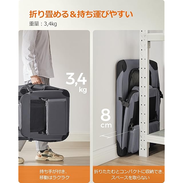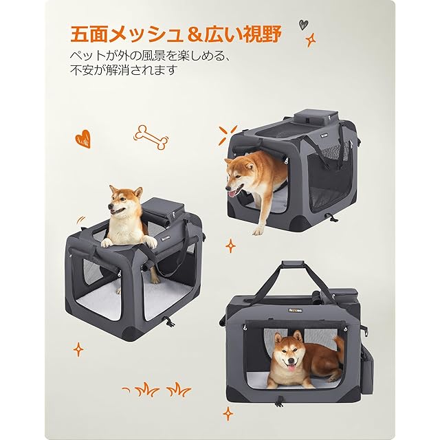 商品名:FEANDREA キャリーバッグ 中大型犬 70×52×52cm 犬用 ペットキャリー 折り畳める 室内外兼用 車用 病院 PDC70GY