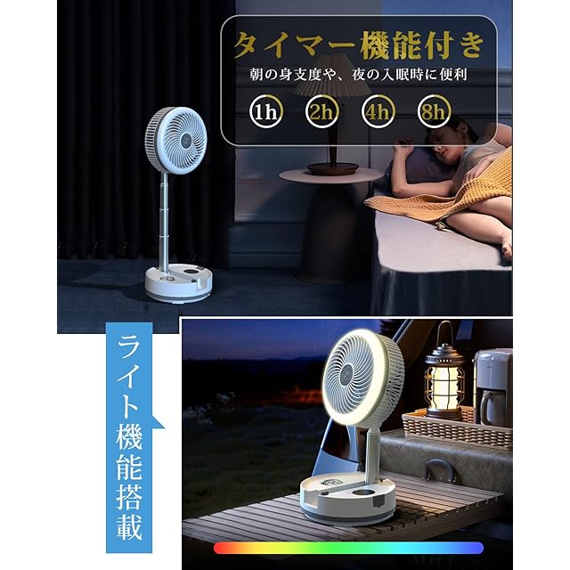 扇風機 折り畳み【業界最大級40,000mAhバッテリー】リビング 扇風機 dcモーター 風量8段階調節 リズム風 卓上扇風機 小型 サーキュレーター 静音 首振り USB充電式扇風機 キャンプ 車中泊 省エネ リモコン付き タイマー機能 LEDライト付き パワフル送風 伸縮式 オールシーズン 暑さ対策 換気/空気循環/部屋干し/衣類乾燥 収納バック付き
