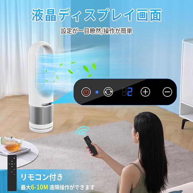 扇風機 タワーファン 羽根なし扇風機 空気清浄機 リビング扇風機 縦型扇風機 サーキュレーター スリム型 送風8段階&温風3段階 パワフル送風 100°左右自動首振り 9Hタイマー機能 LEDディスプレイ DCモーター 静音 省エネリモコン付 スリム扇風機 冷暖タイプ セラミックヒーター 業務&家庭用 PSE認証済 タッチパネルと説明書