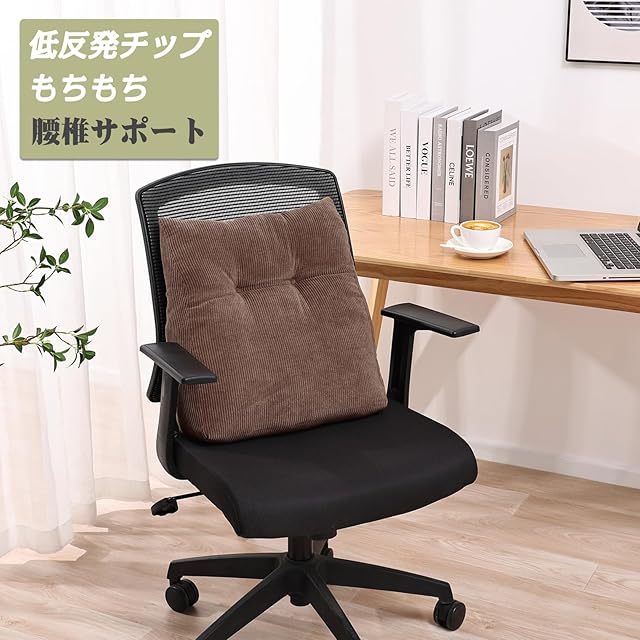 【サポートクッション】低反発ウレタンチップ入りで腰や背中をしっかりやさしくサポートし、温もりが背中に広がります。程よい固さで腰部にフィットし、正しい座り姿勢をみちびき、 腰椎のストレスを緩和します。