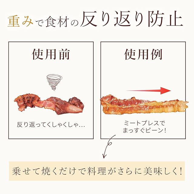 適度な重さで、食材の反り返りや焼きムラの防止に!